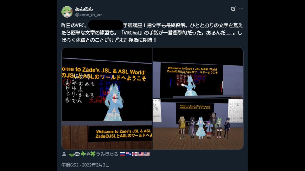 2022〜2024年にかけて、VRChatでは「WATBT(We Are The Best Team)」を中心に、VR手話学習イベントが活発に行われていました。
